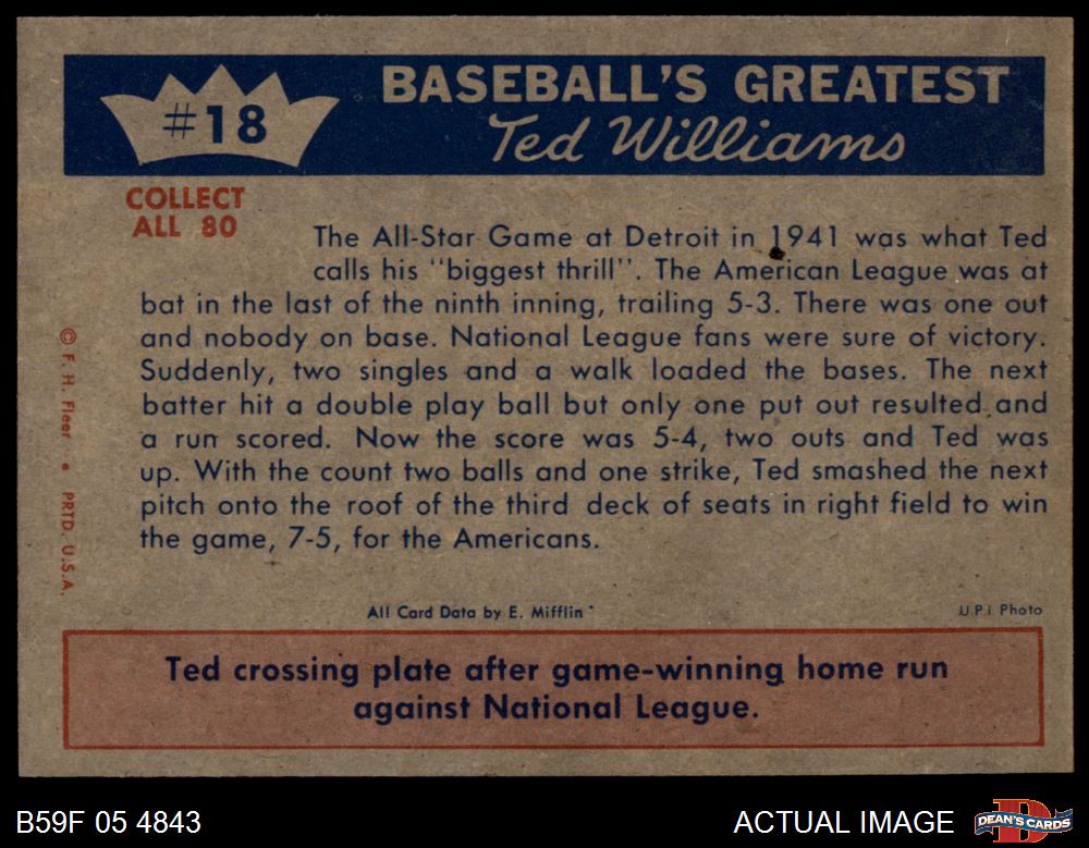 1959 Fleer #18 - Ted Williams All Star Hero 7 - NM