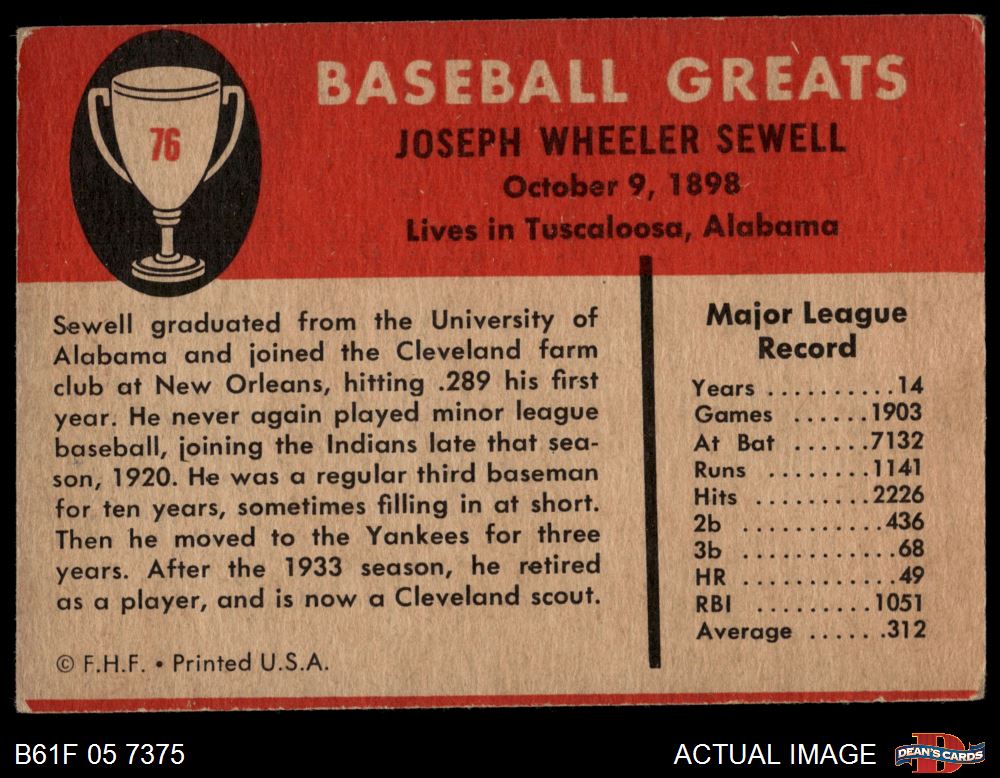 1961 Fleer #76 Joe Sewell 3.5 - VG+