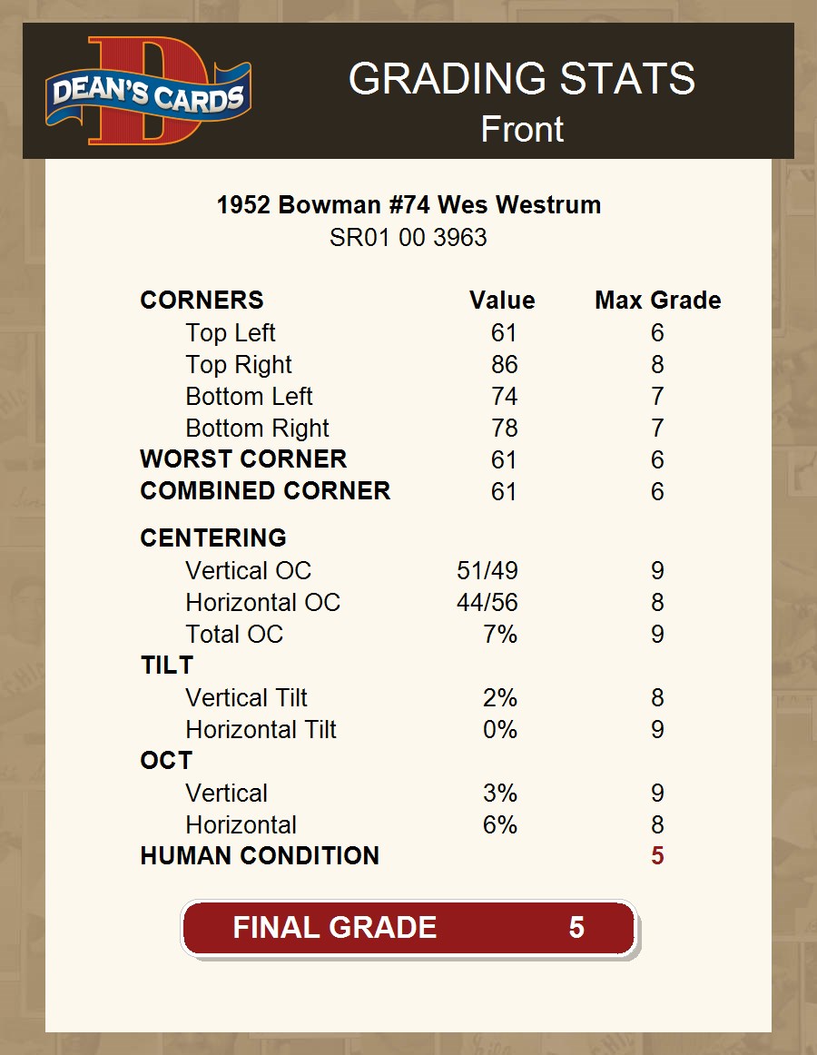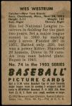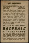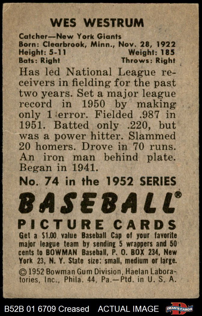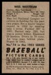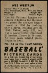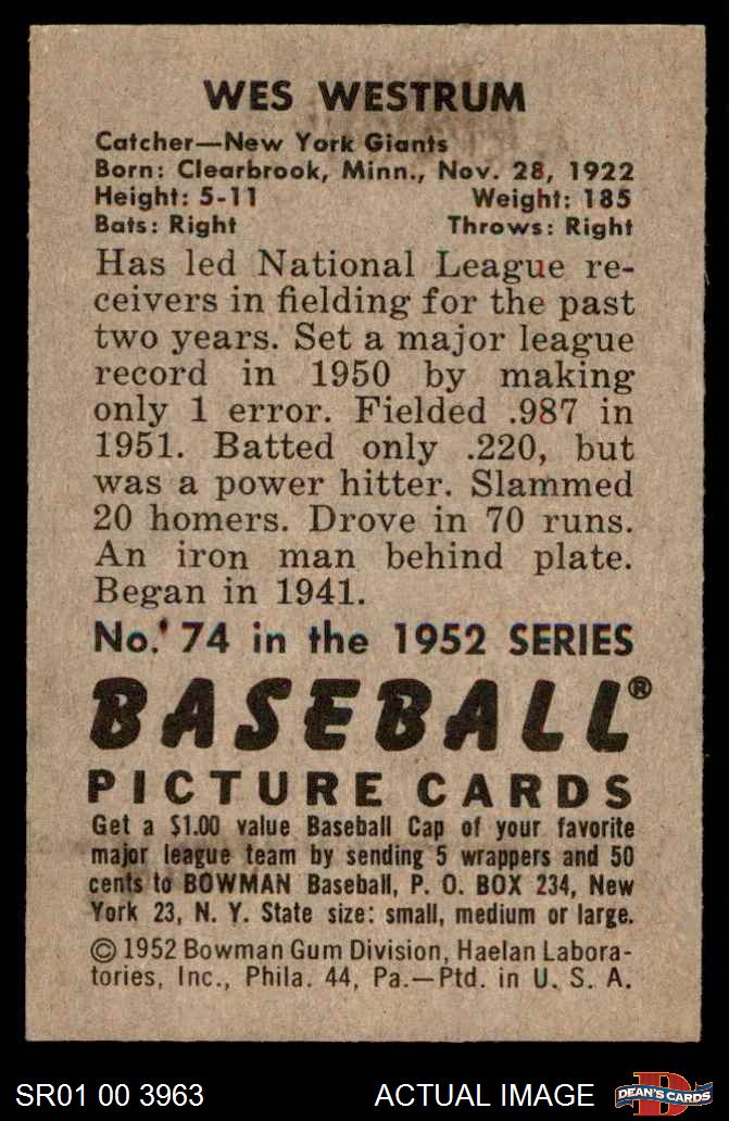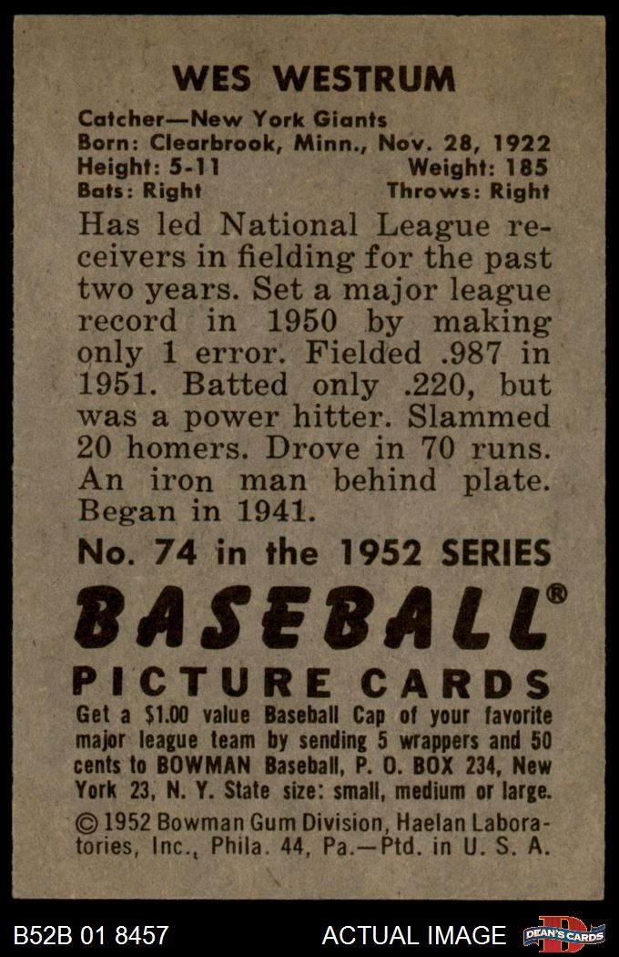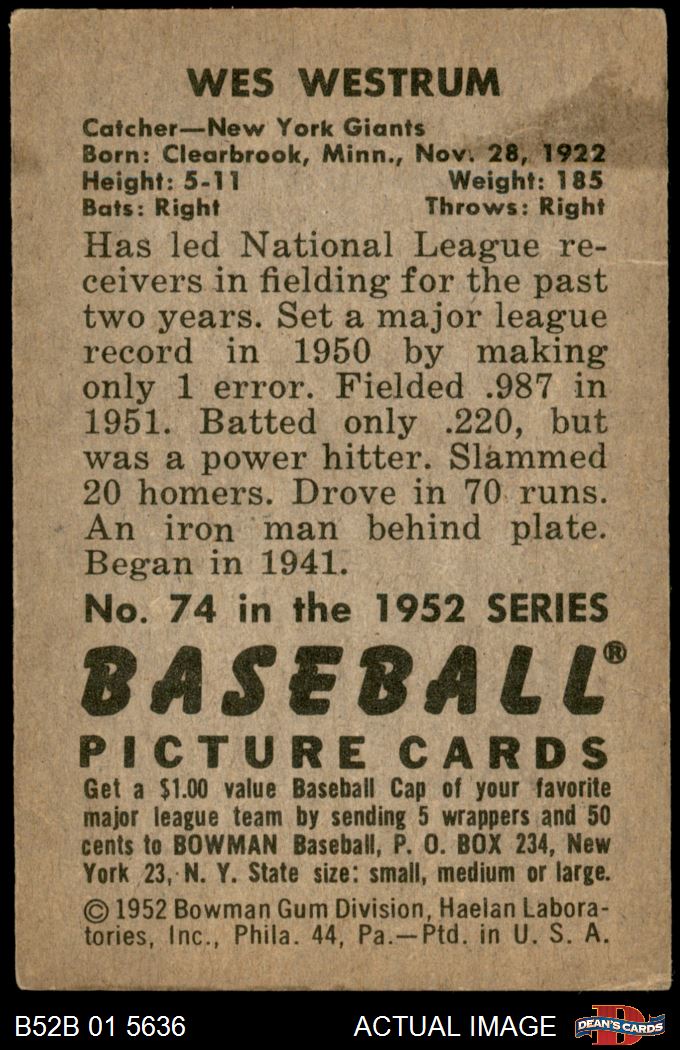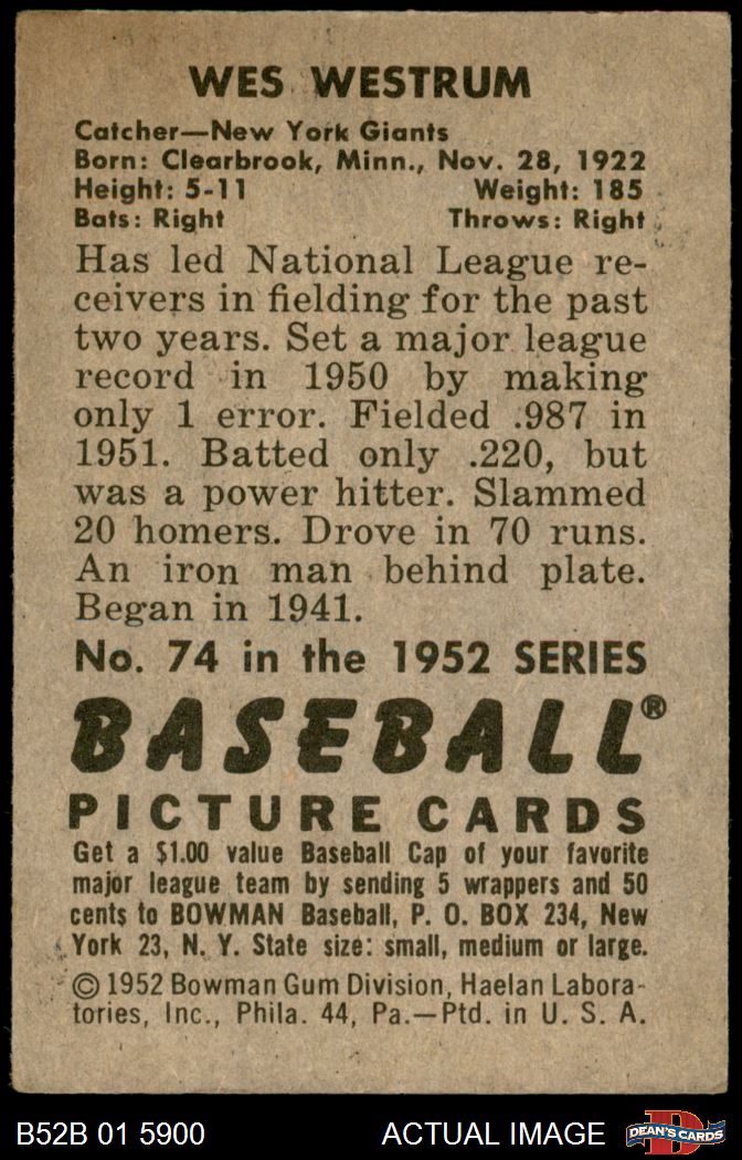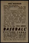 1952 Bowman #74 Wes Westrum