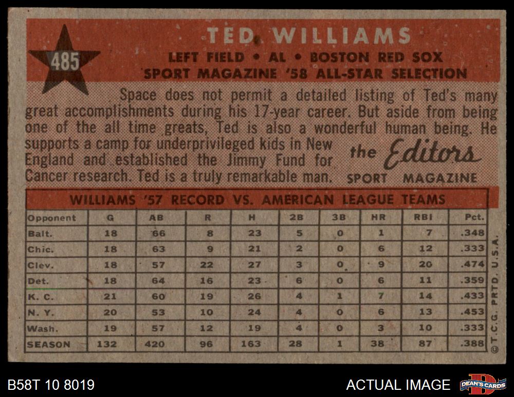 1958 Topps Baseball Cards (8,788 available)1958 Topps Red Sox (693 available)