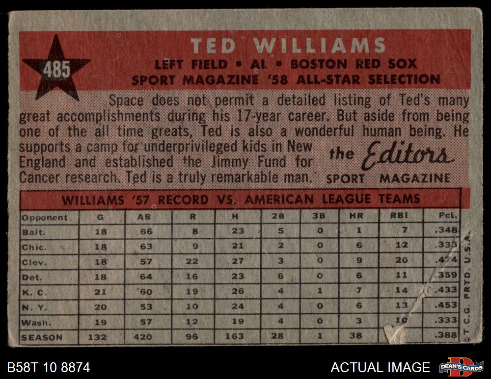 1958 Topps #485 - Ted Williams All-Star 2 - GOOD