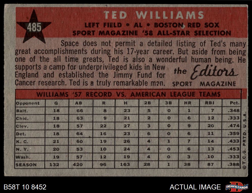 1958 Topps #485 - Ted Williams All-Star 3 - VG