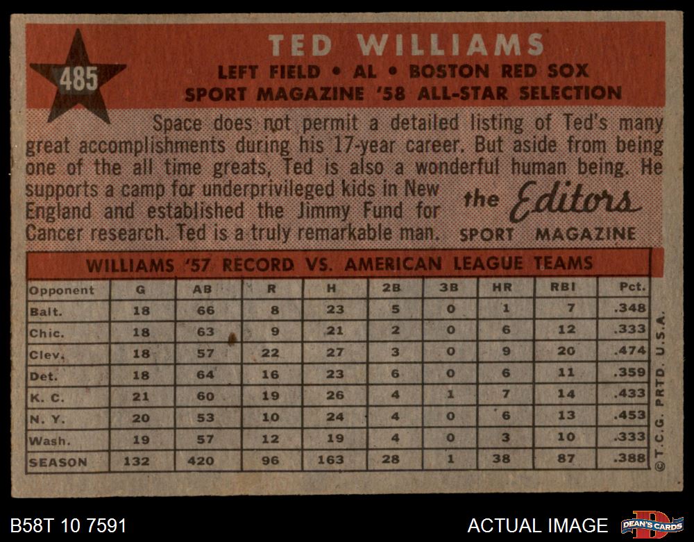 1958 Topps #485 - Ted Williams All-Star 5 - EX