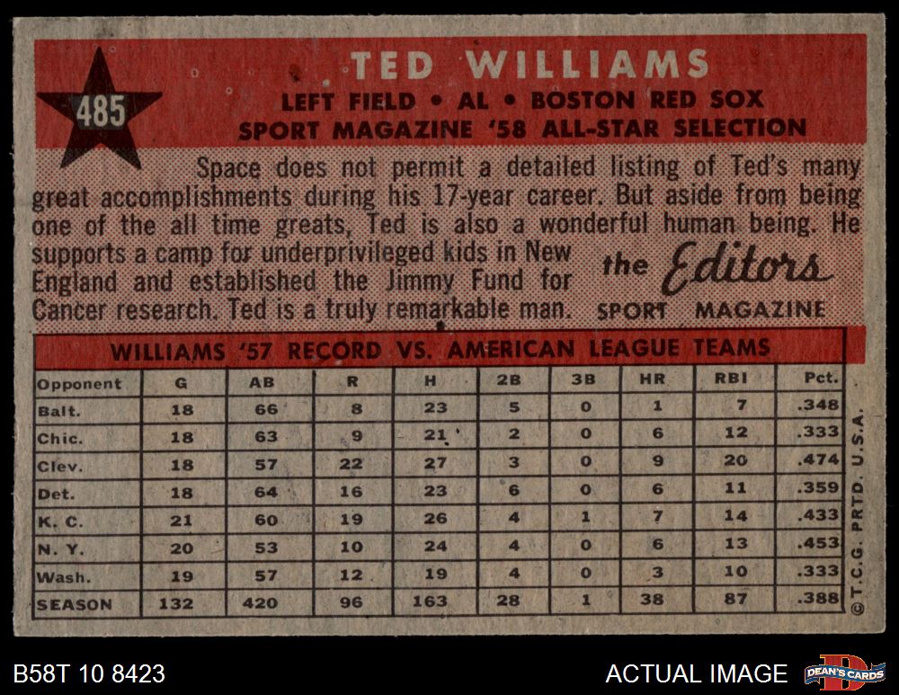 1958 Topps #485 - Ted Williams All-Star 5.5 - EX+