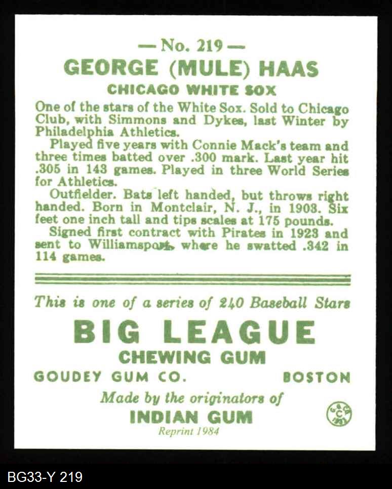 1933 Goudey Reprint (1,373 available)1933 Goudey Reprint White Sox (74 available)