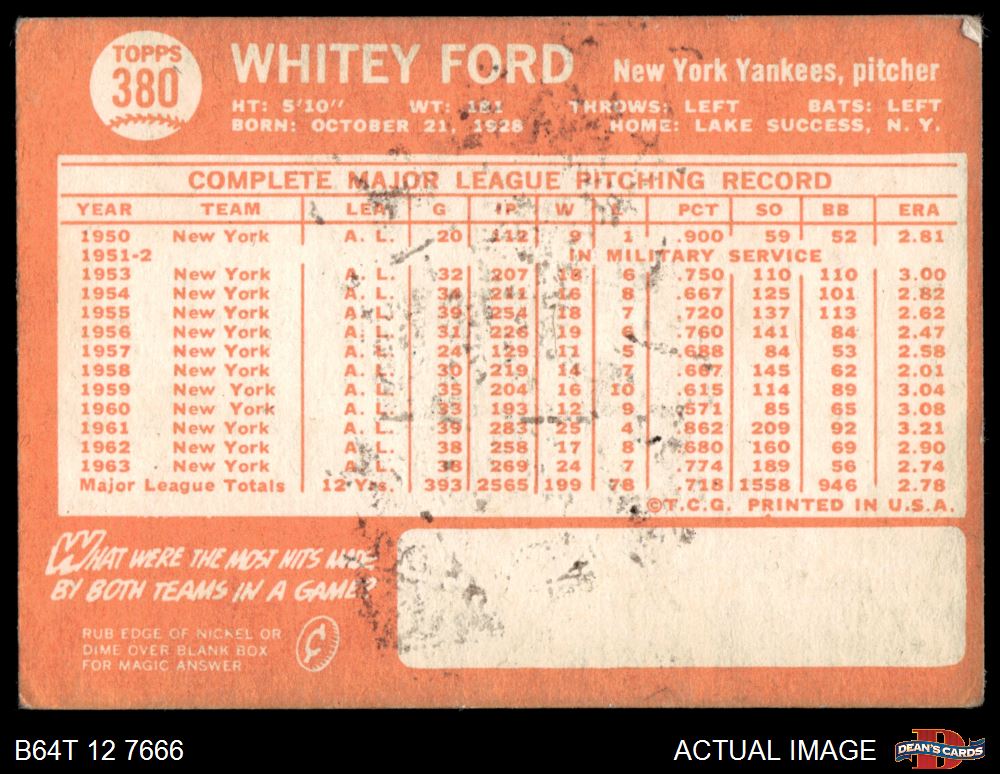 1964 Topps #380 Whitey Ford 2 - GOOD