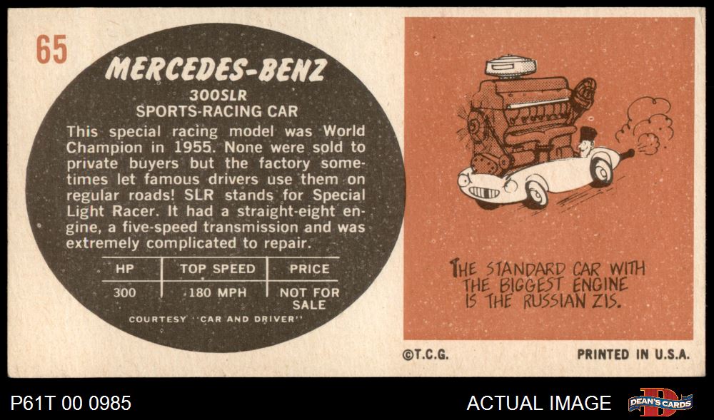 1961 Topps Sports Cars #65 Mercedes-Benz 300SLR