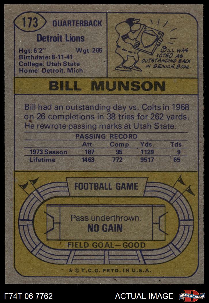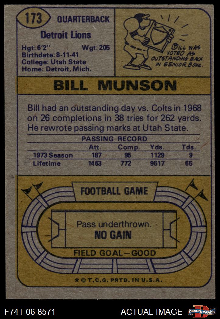 1974 Topps #173 Bill Munson 6 - EX/MT