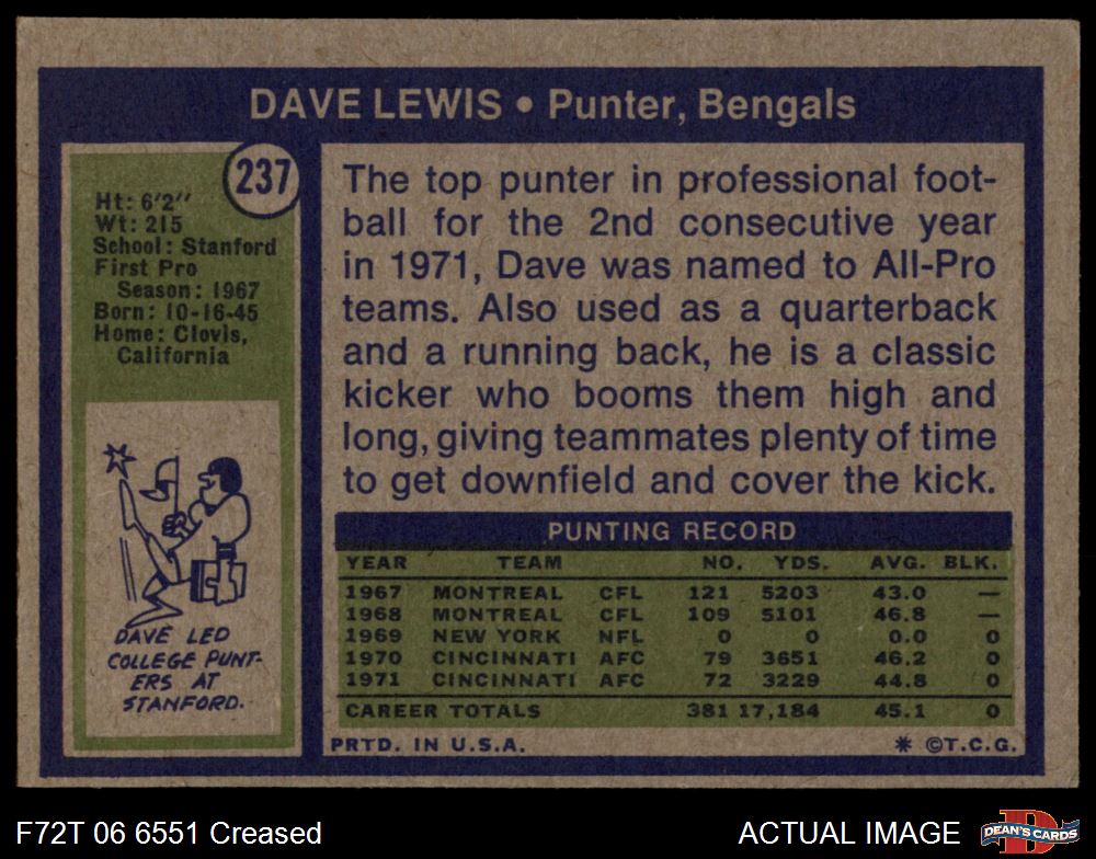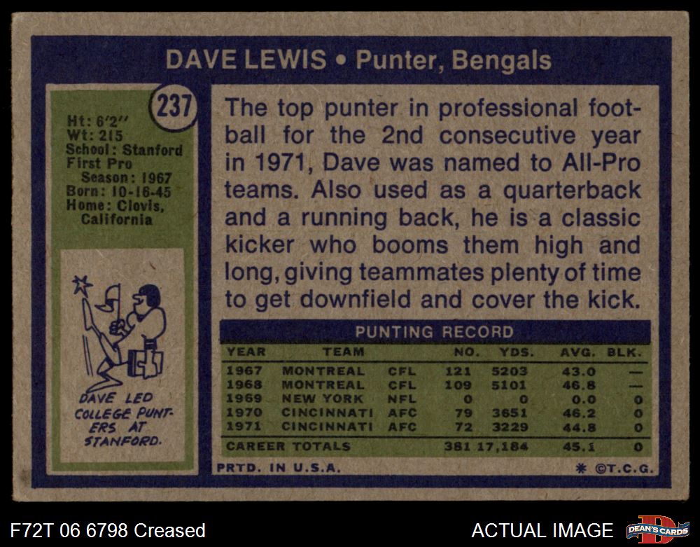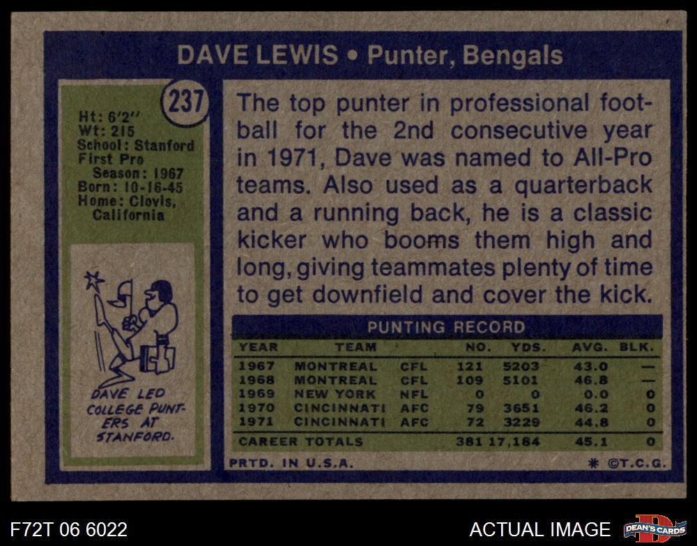 1972 Topps #237 Dave Lewis Front Thumbnail