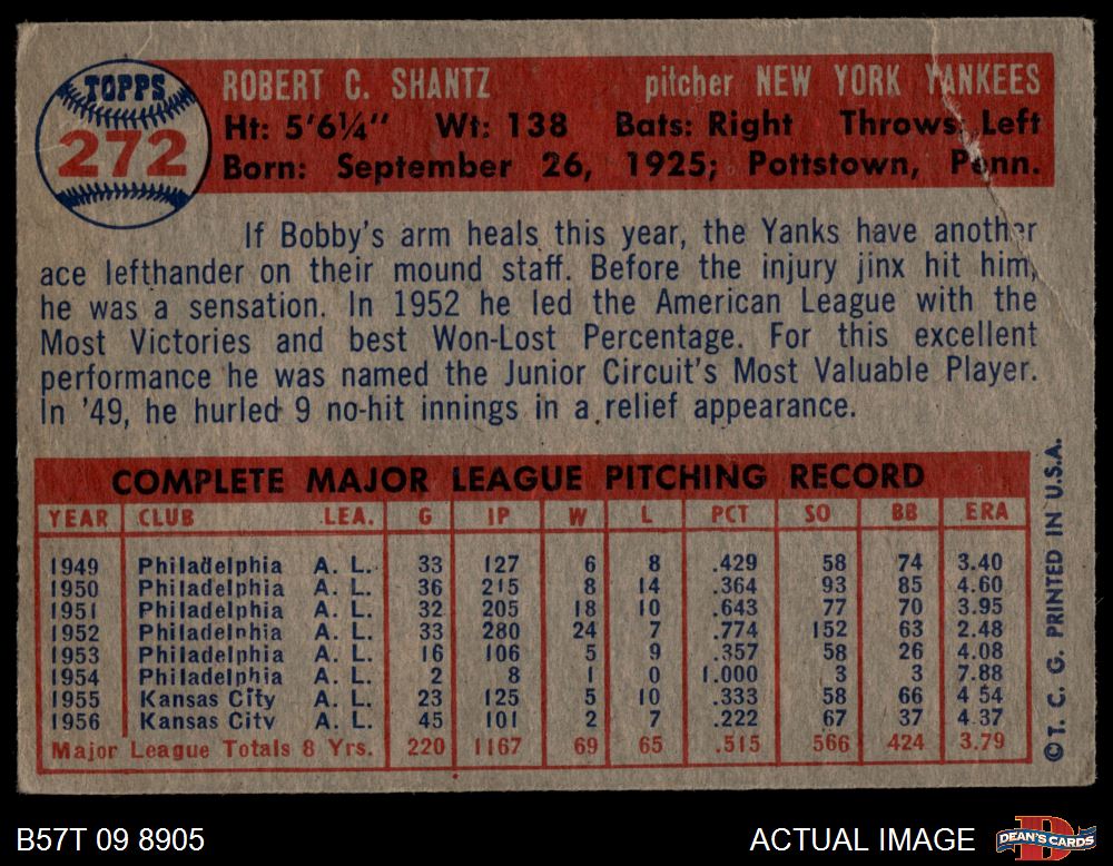 1957 Topps #272 Bobby Shantz 1.5 - FAIR