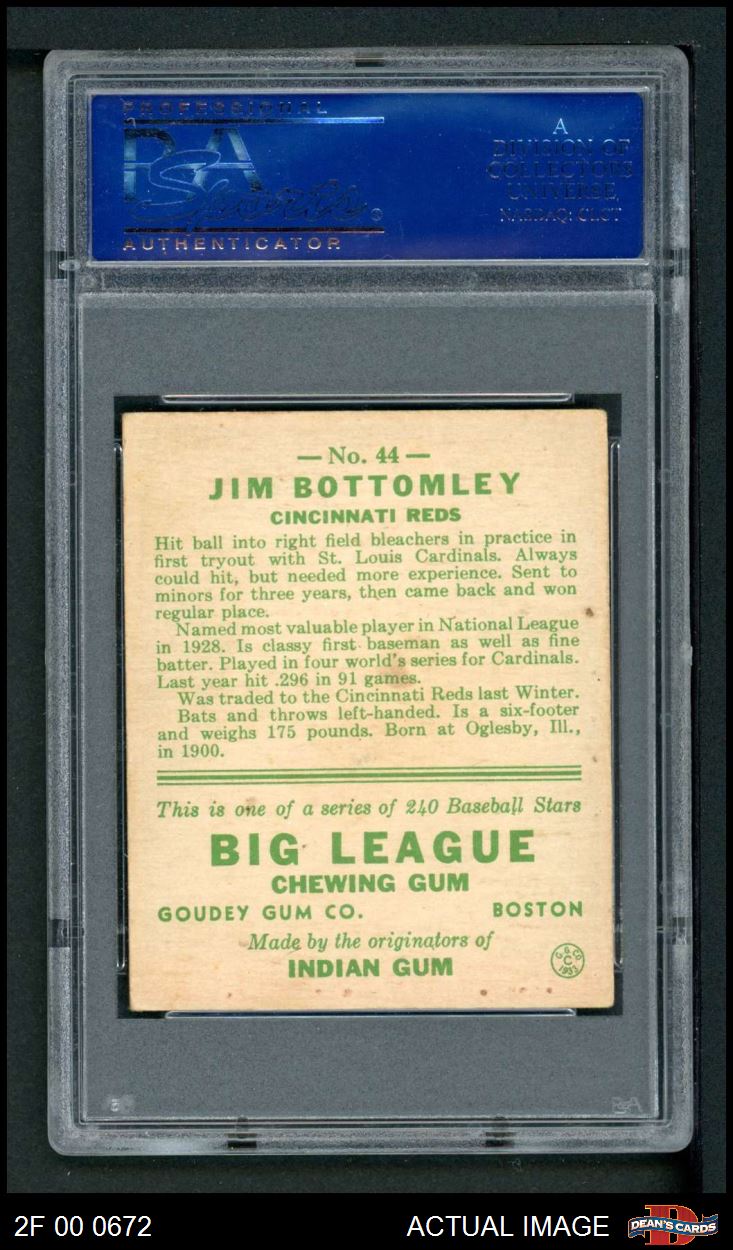 1933 Goudey #44 Jim Bottomley PSA 4 - VG/EX