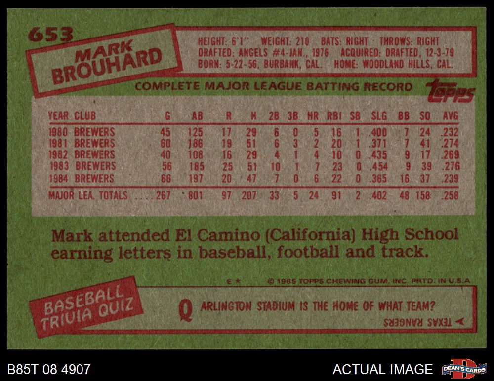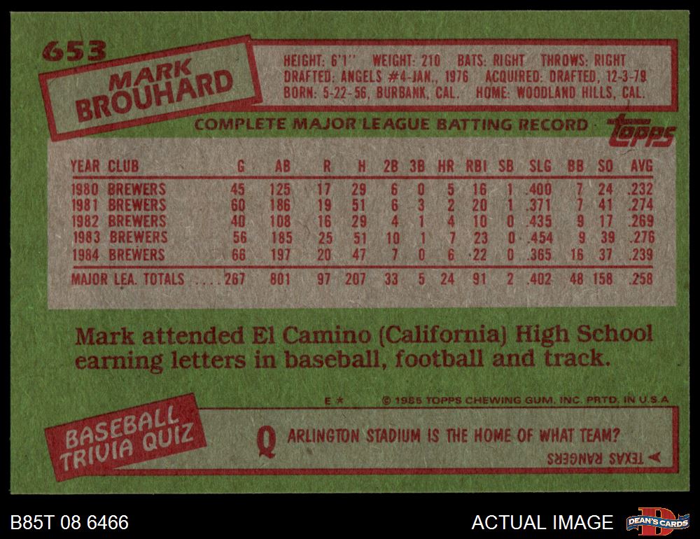 1985 Topps #653 Mark Brouhard 6 - EX/MT