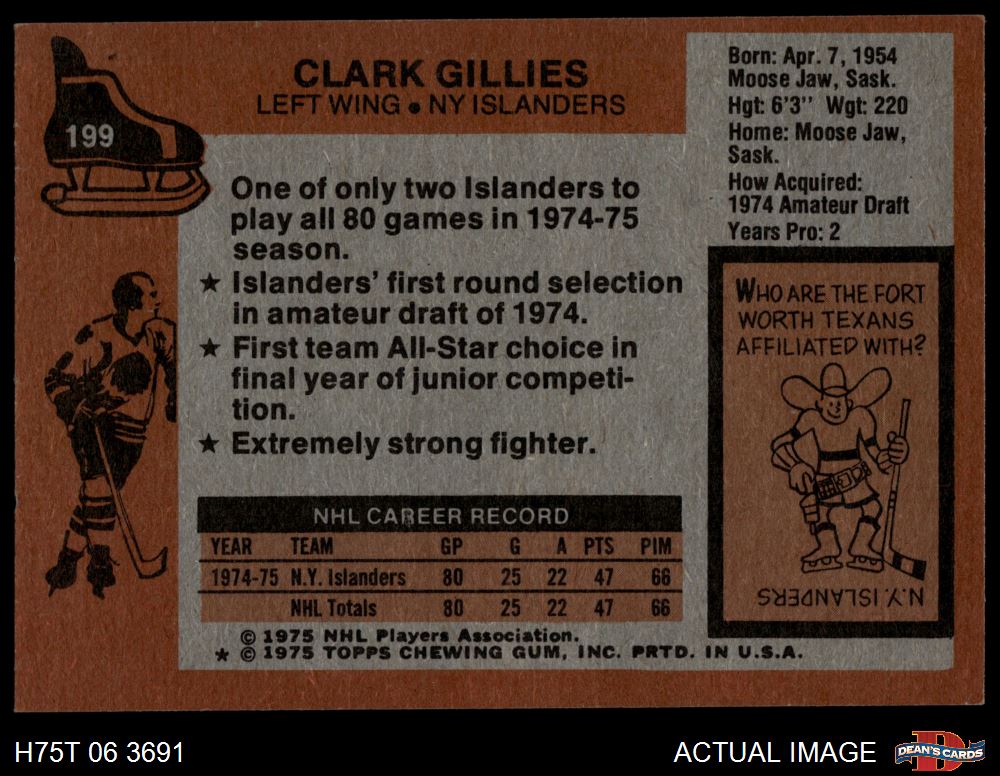 1975 Topps #199 Clark Gillies 6 - EX/MT