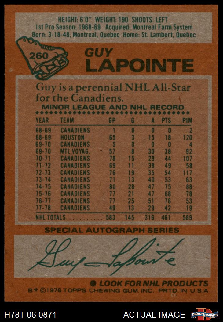 1978 Topps #260 Guy Lapointe