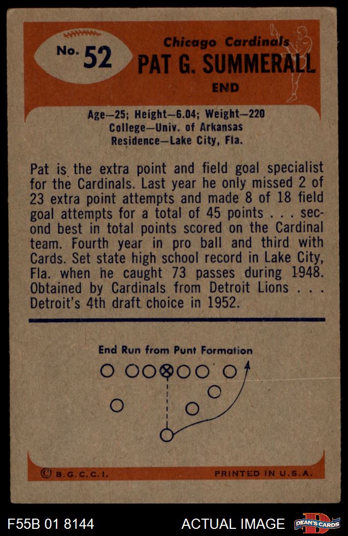 1955 Bowman #52 Pat Summerall 3 - VG