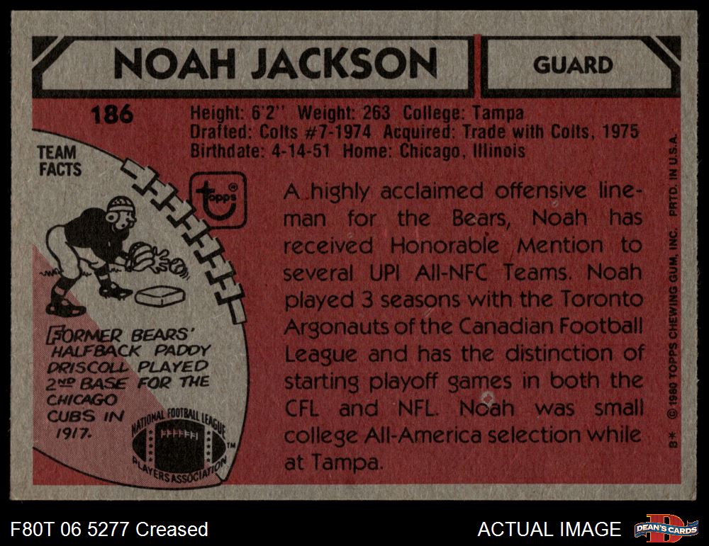 1980 Topps #186 Noah Jackson