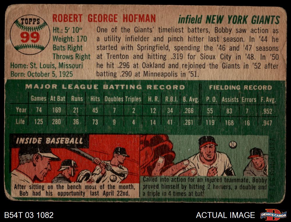 1954 Topps #99 Bobby Hofman 1 - POOR