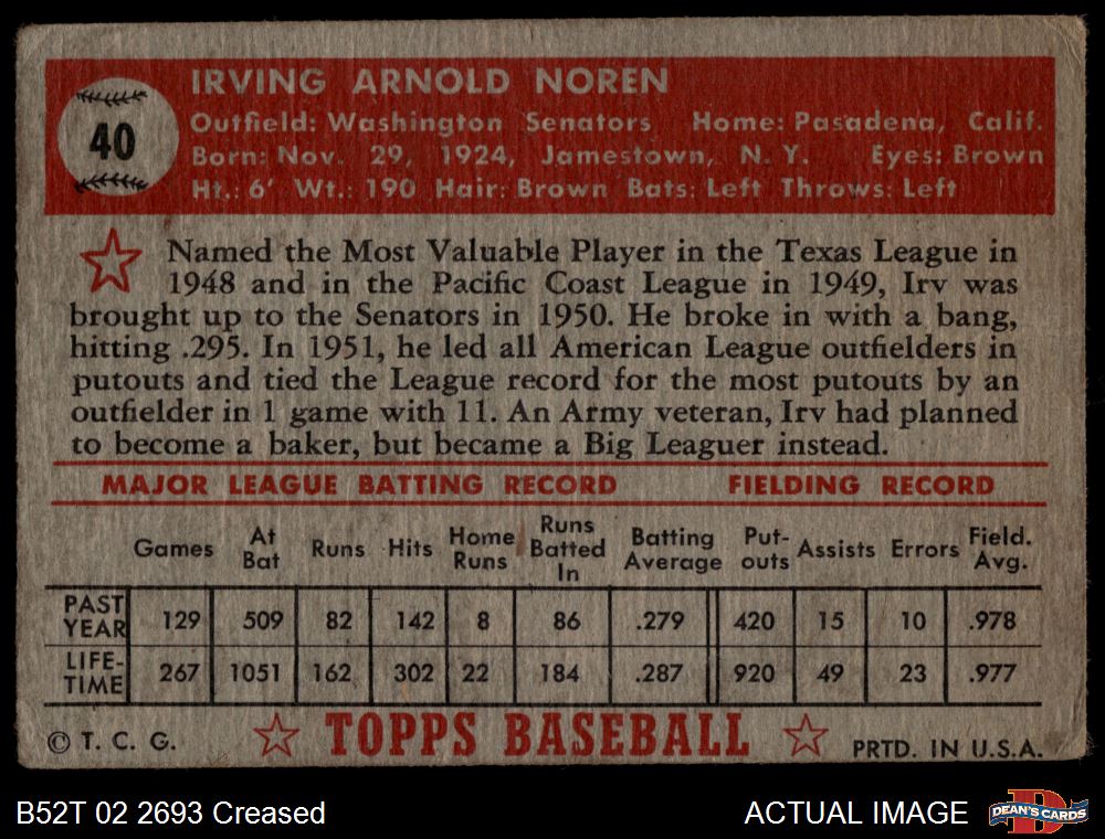 1952 Topps #40 Irv Noren