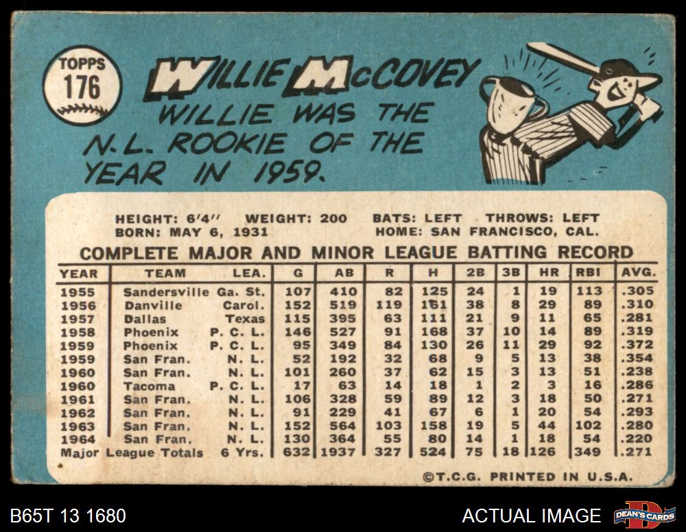 1965 Topps #176 Willie McCovey 1.5 - FAIR