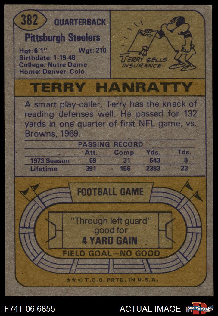1974 Topps #382 Terry Hanratty