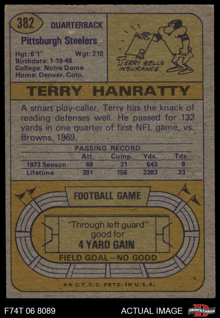 1974 Topps #382 Terry Hanratty 4 - VG/EX
