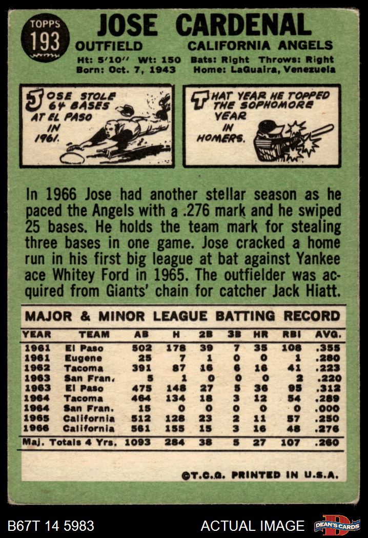 1967 Topps #193 Jose Cardenal 1.5 - FAIR