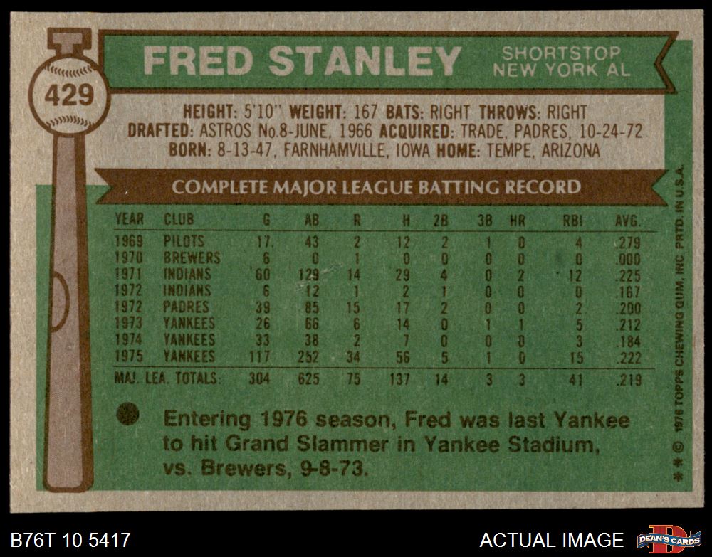 1976 Topps #429 Fred Stanley 7 - NM