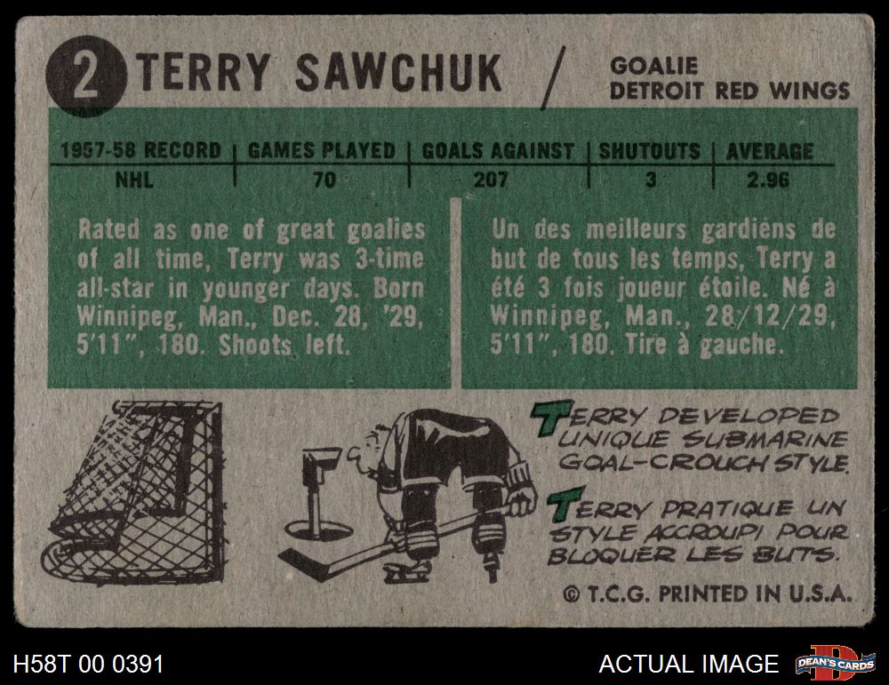 1958 Topps #2 Terry Sawchuk 1.5 - FAIR