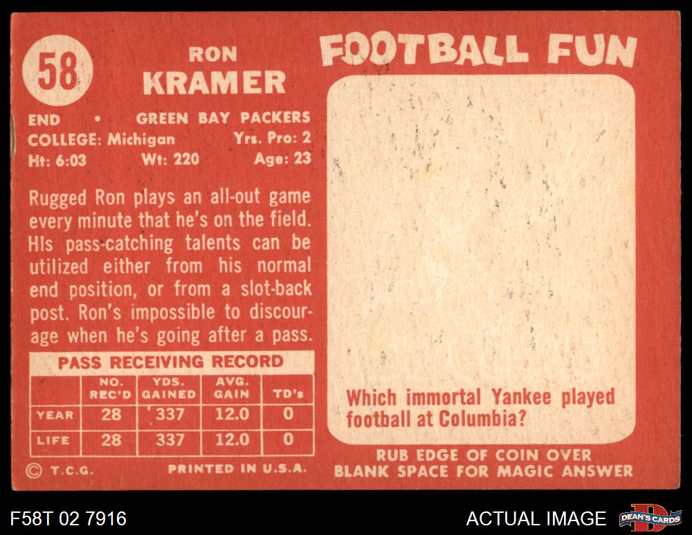 1958 Topps #58 Ron Kramer 6.5 - EX/MT+