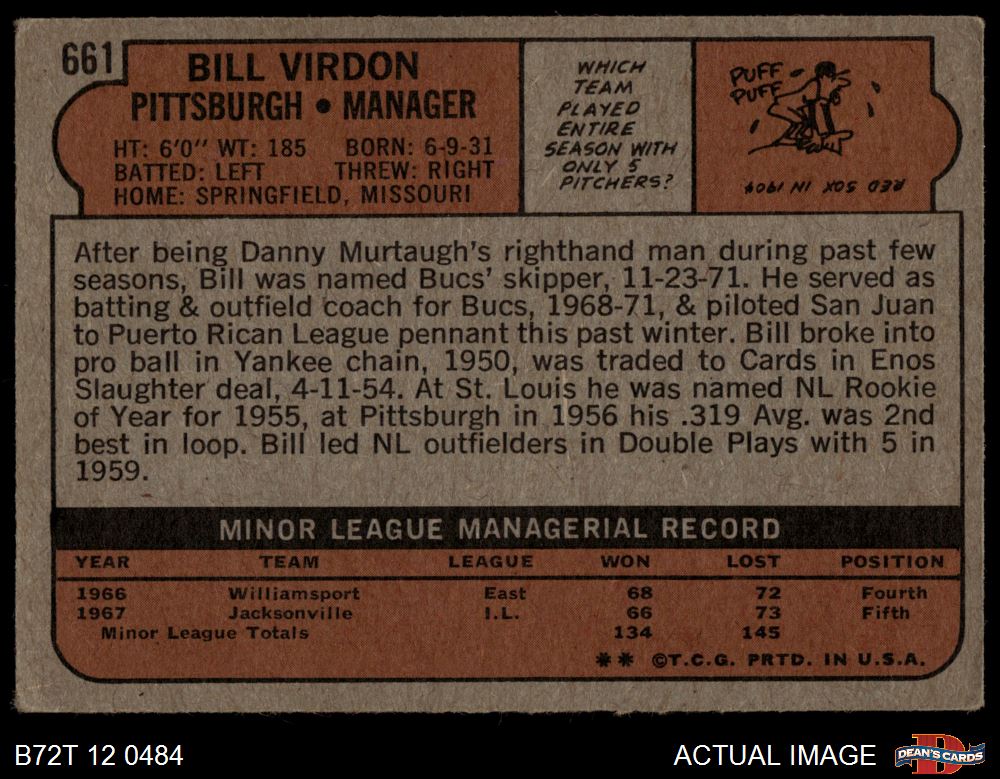 1972 Topps #661 Bill Virdon 1.5 - FAIR