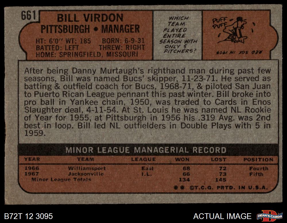 1972 Topps #661 Bill Virdon 2 - GOOD