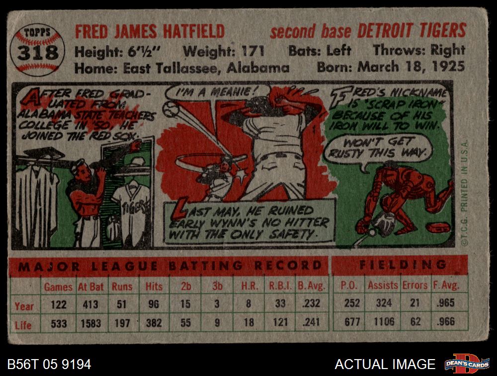 1956 Topps #318 Fred Hatfield
