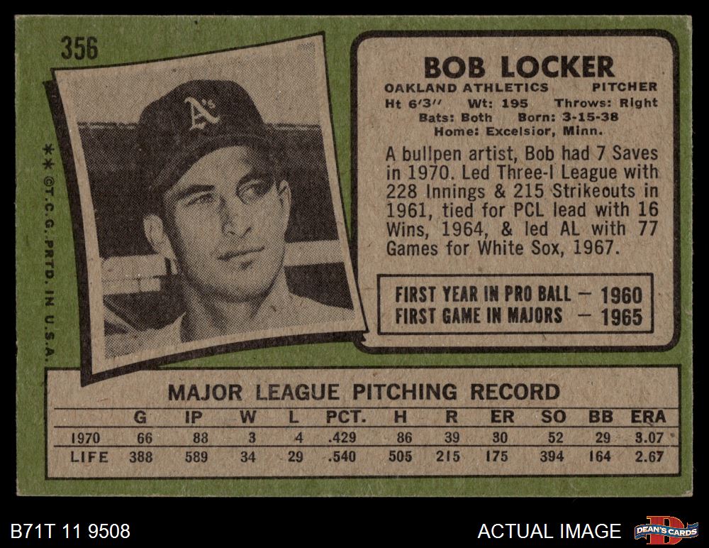 1971 Topps #356 Bob Locker