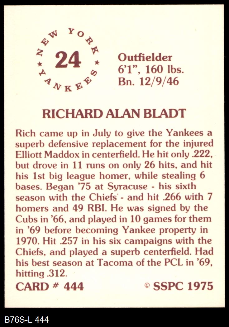 1975 SSPC #444 Rich Bladt 8 - NM/MT