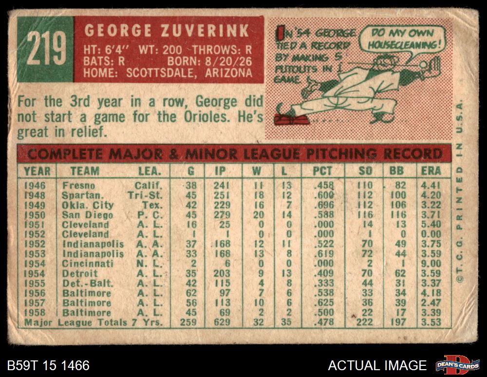 1959 Topps #219 George Zuverink 1 - POOR