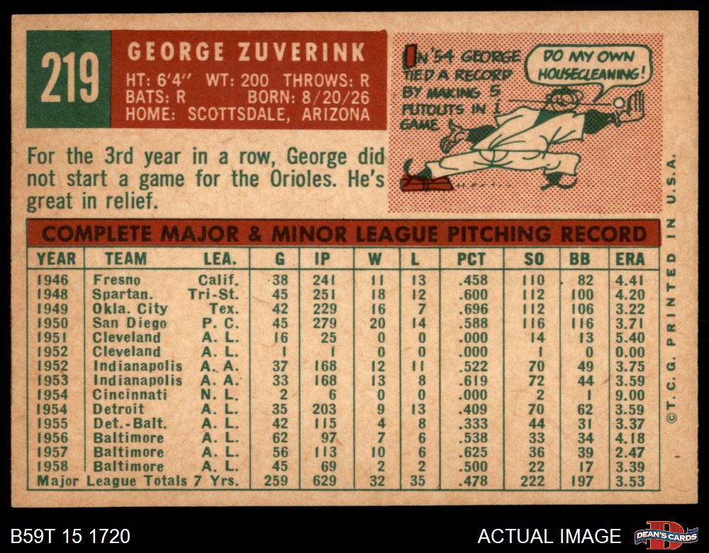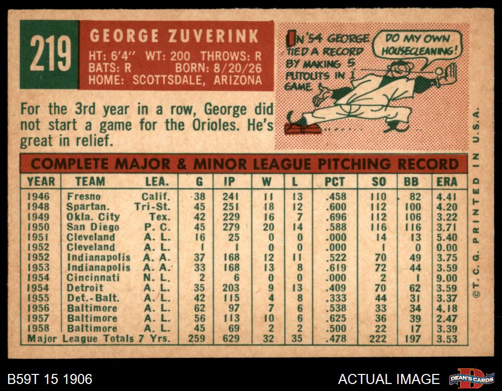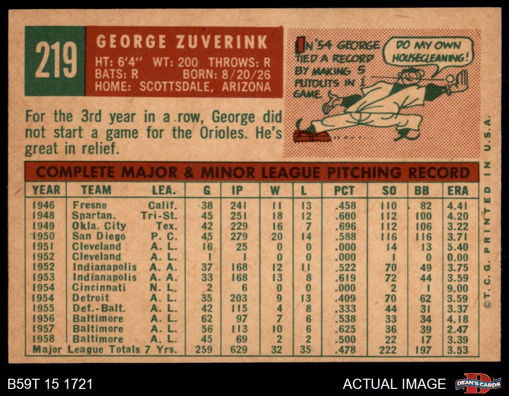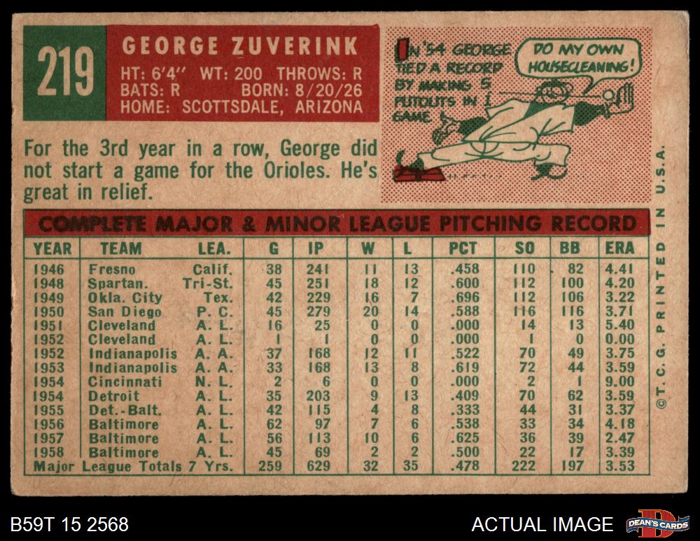 1959 Topps #219 George Zuverink
