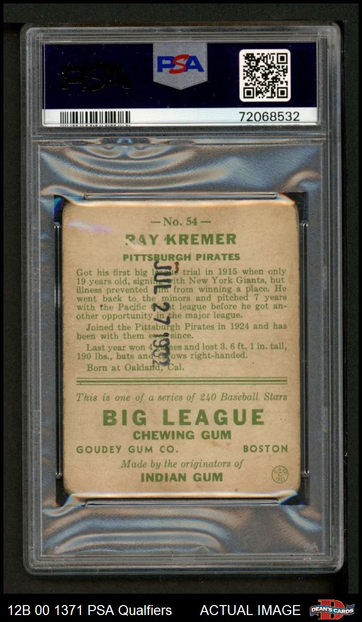 1933 Goudey #54 Ray Kremer