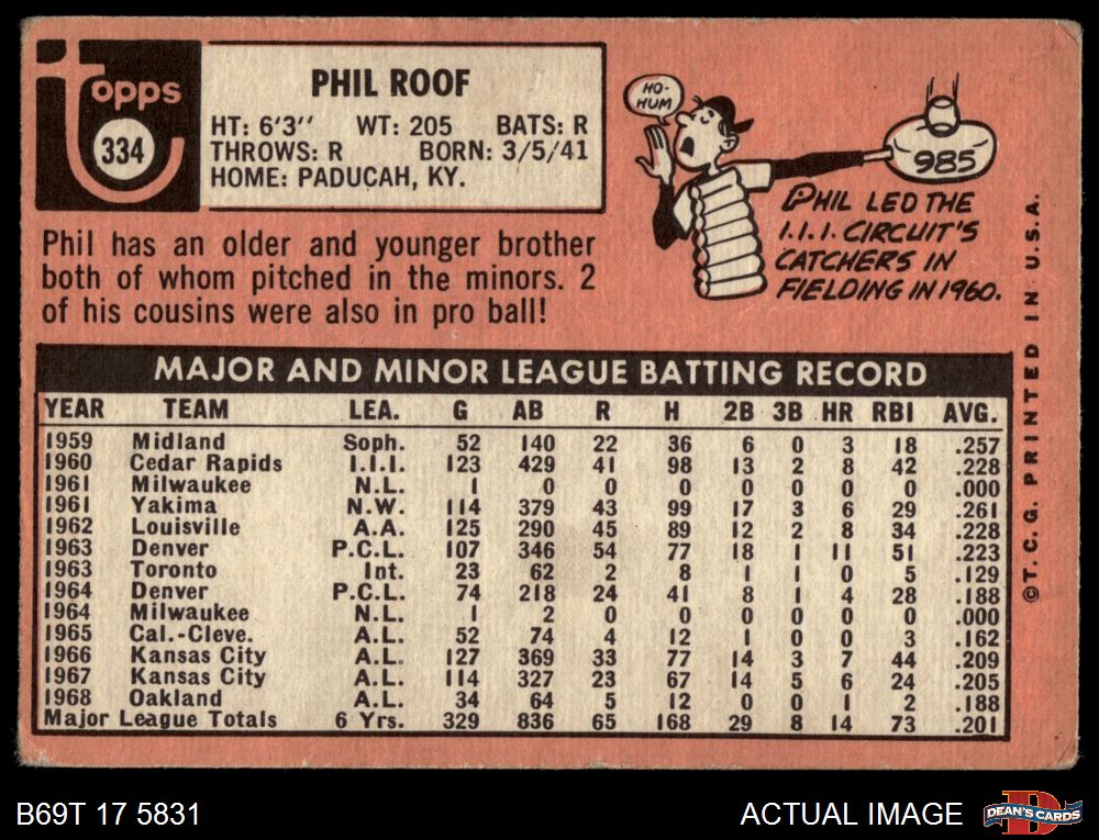1969 Topps #334 Phil Roof 1.5 - FAIR