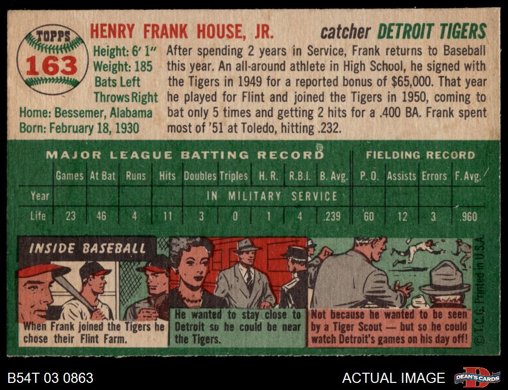 1954 Topps #163 Frank House 6 - EX/MT