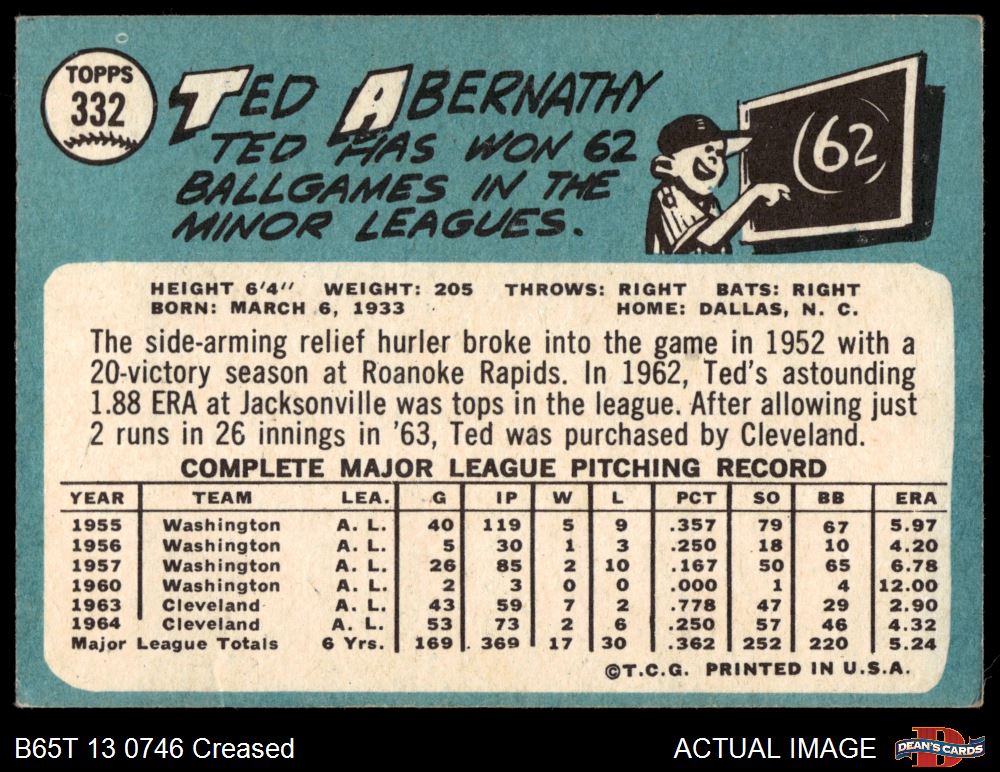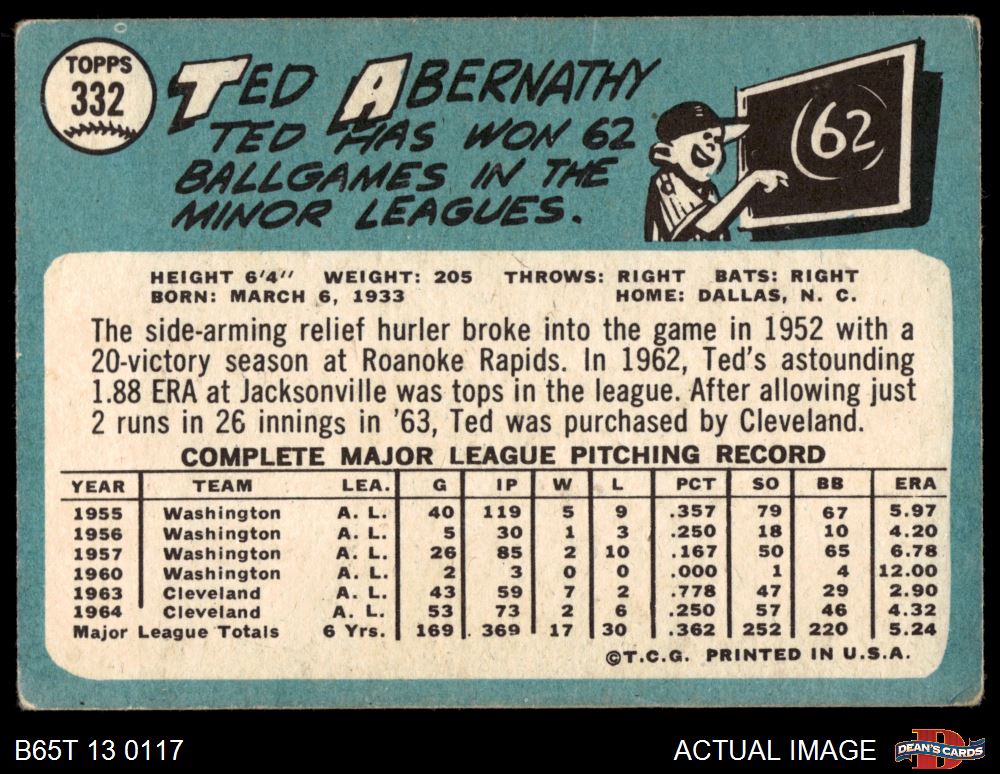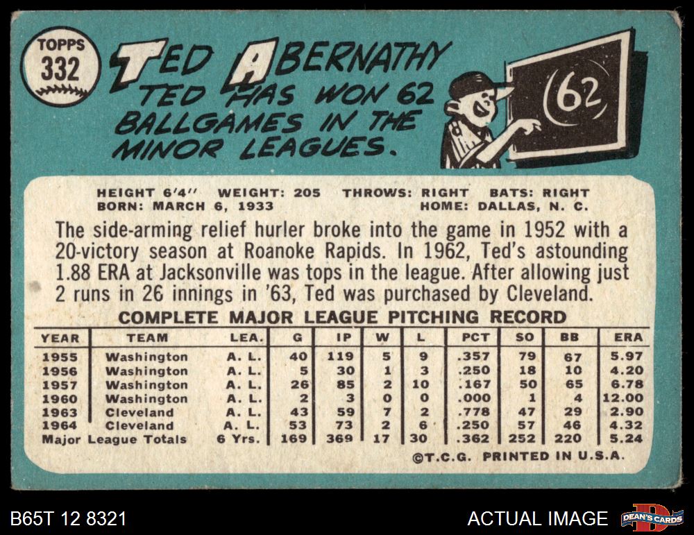 1965 Topps #332 Ted Abernathy Front Thumbnail