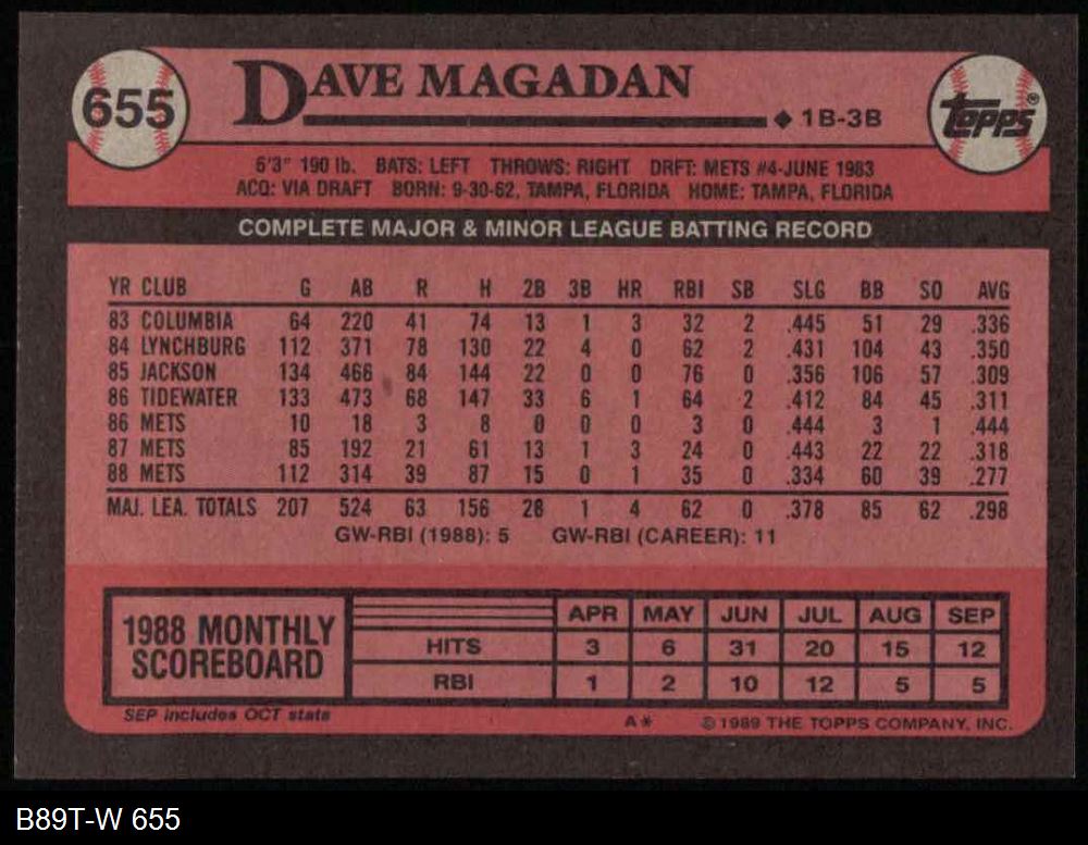 1989 Topps #655 Dave Magadan