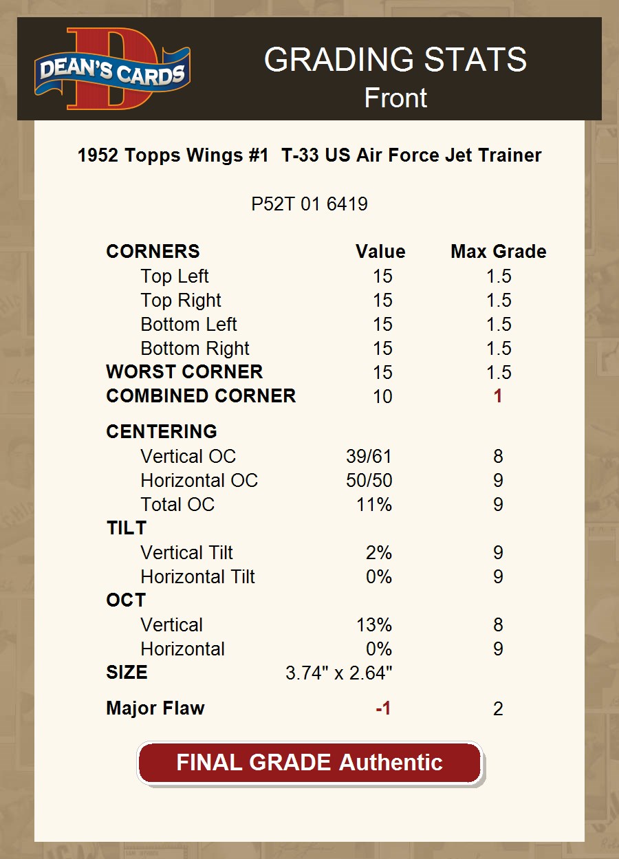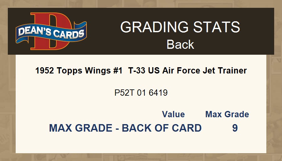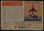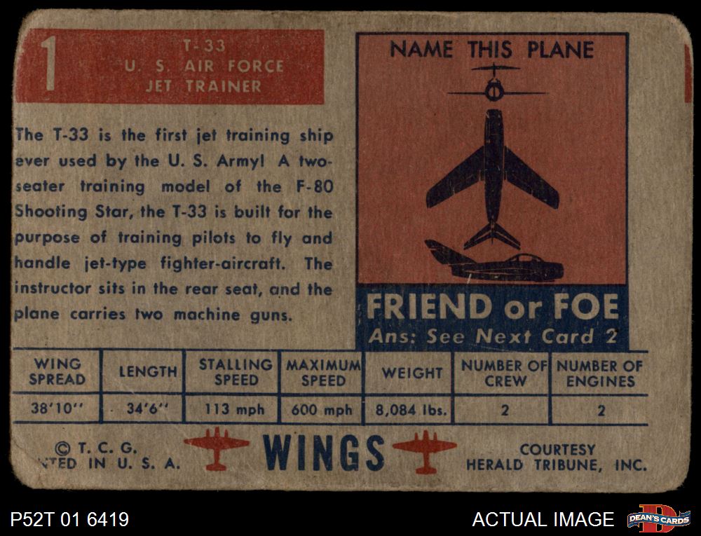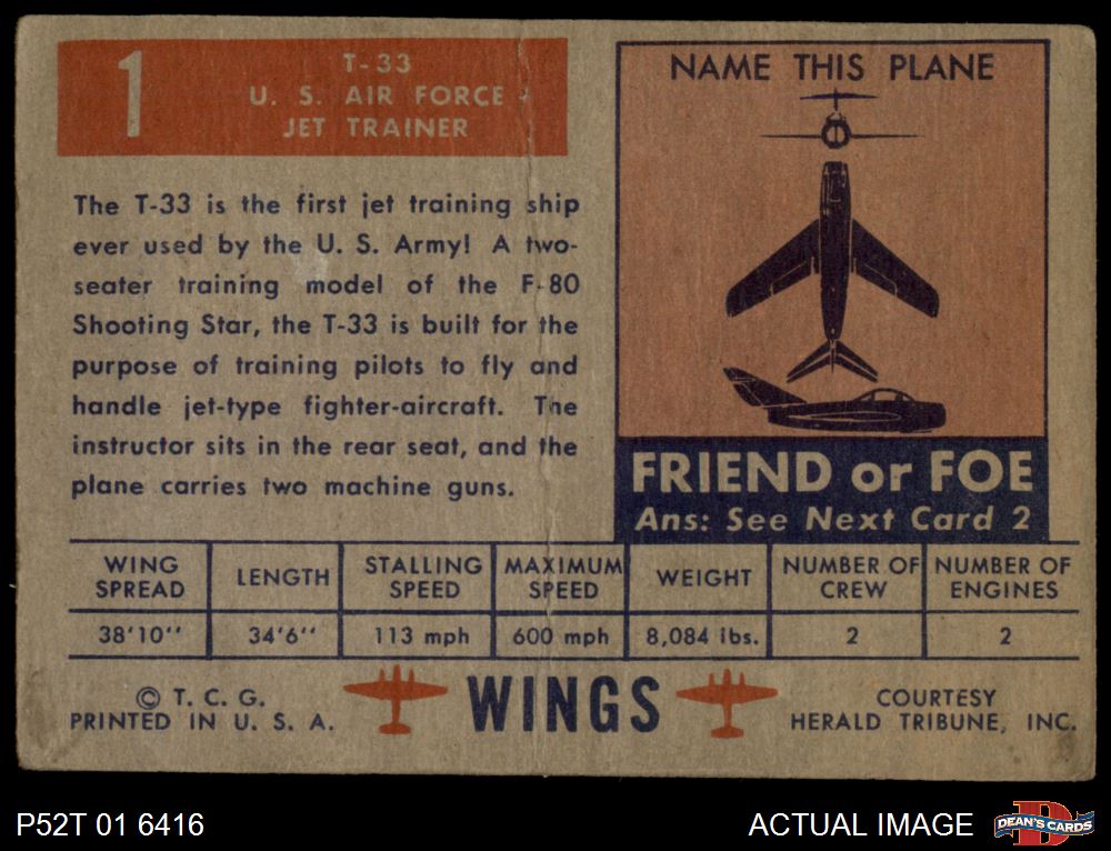 1952 Topps Wings #1 T-33 US Air Force Jet Trainer