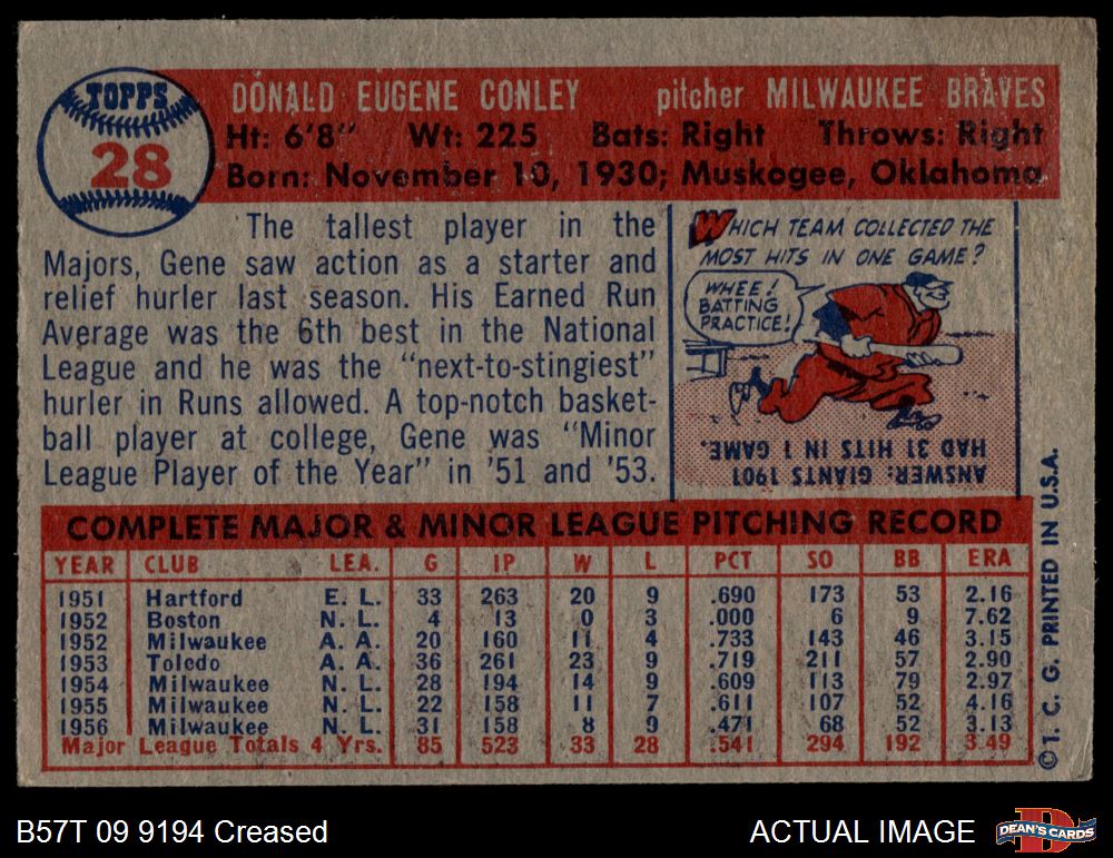 1957 Topps #28 Gene Conley