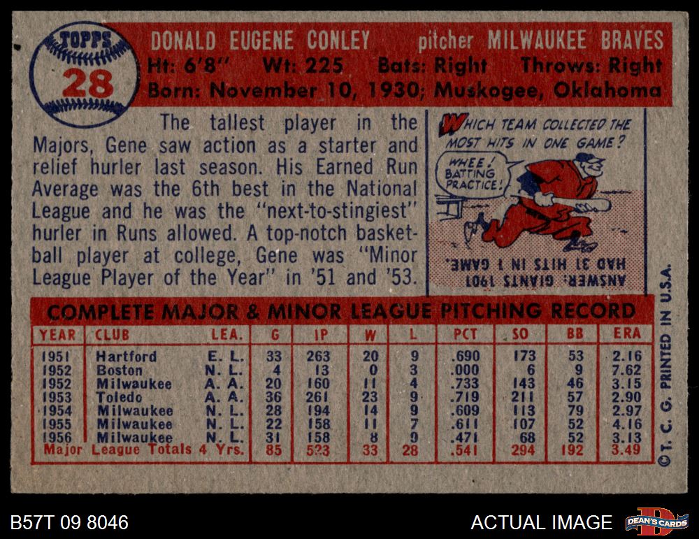 1957 Topps #28 Gene Conley 4 - VG/EX