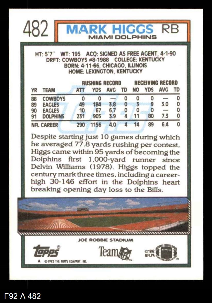 1992 Topps #482 Mark Higgs 8 - NM/MT