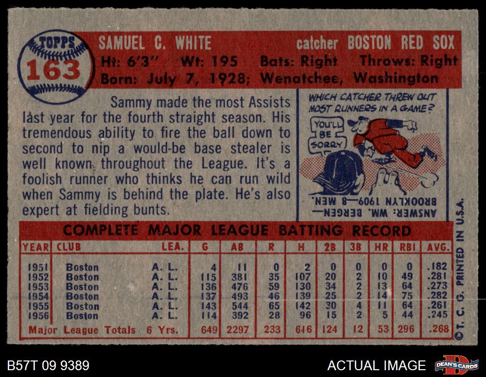 1957 Topps #163 Sammy White 5 - EX