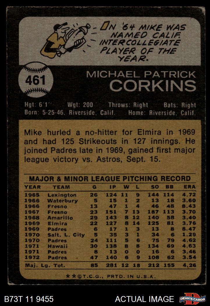 1973 Topps #461 Mike Corkins 3 - VG