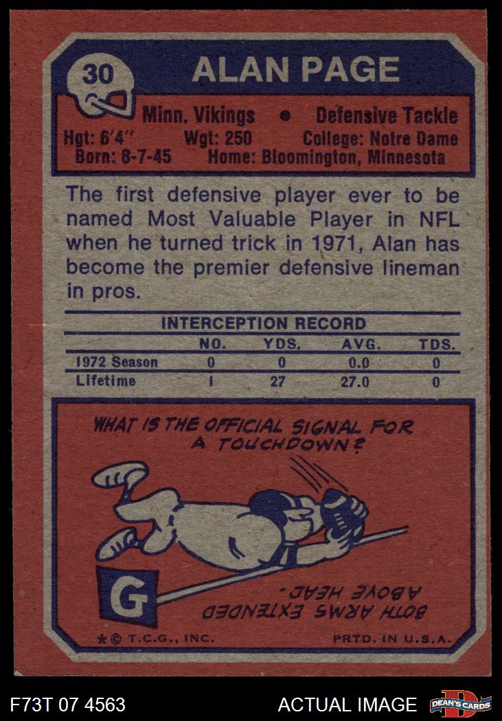 1973 Topps #30 Alan Page 7 - NM
