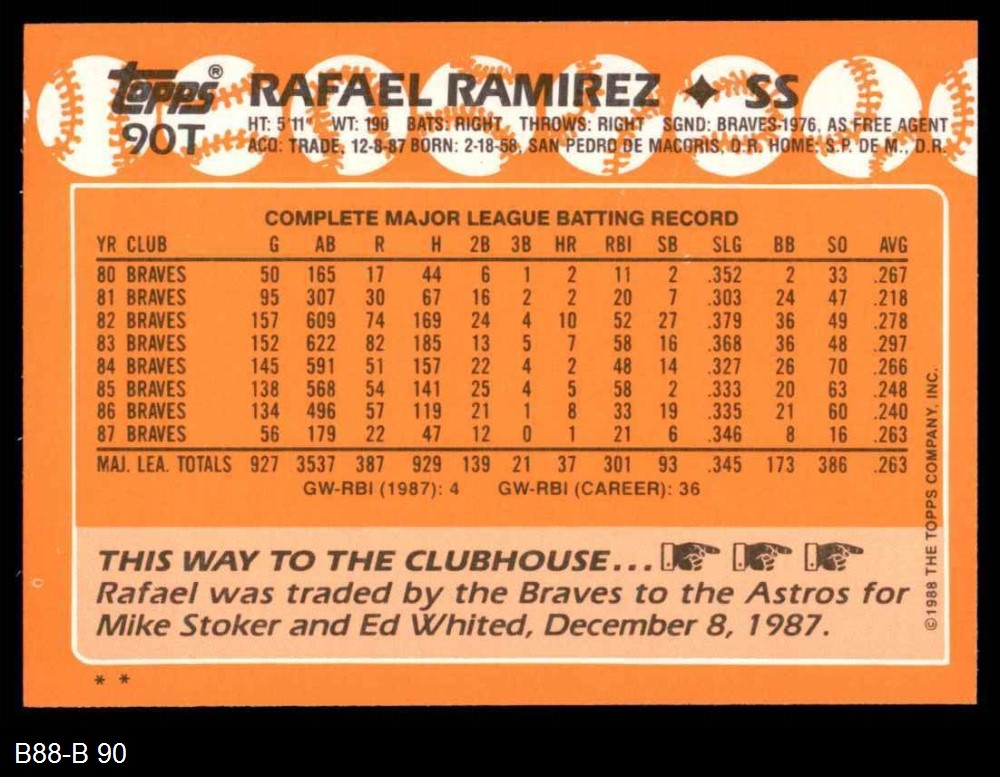1988 Topps Traded #90 T Rafael Ramirez 8 - NM/MT