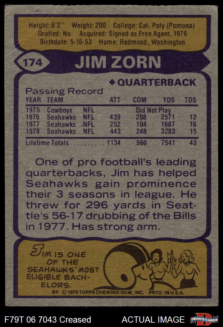 1979 Topps #174 Jim Zorn 2.5 - GD+